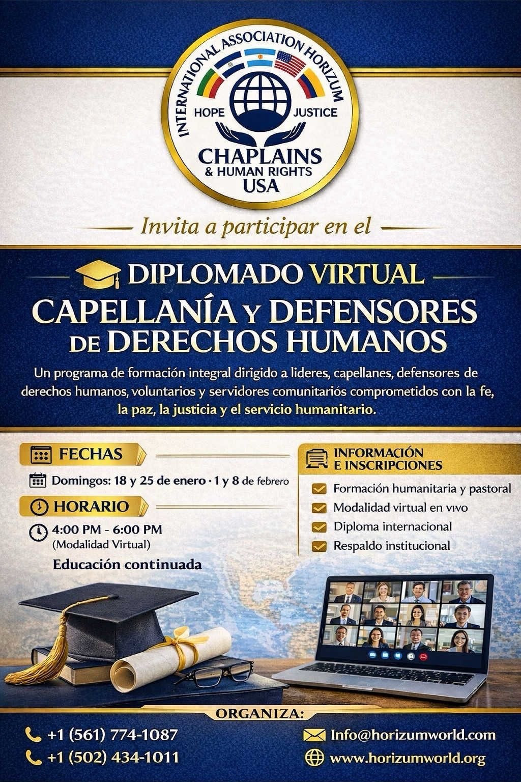 Participate in our training program for chaplains, where you will learn to lead and serve vulnerable communities with empathy and coherence. Together, we promote peace and dignity in every corner of the world.